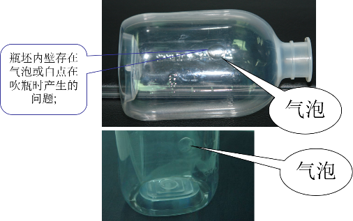 1、瓶坯氣泡:瓶坯中的氣泡主要是膠料塑化不良造成的,東華機械的PP專用注塑機都配有專用的螺桿和料筒來規(guī)避這個問題;